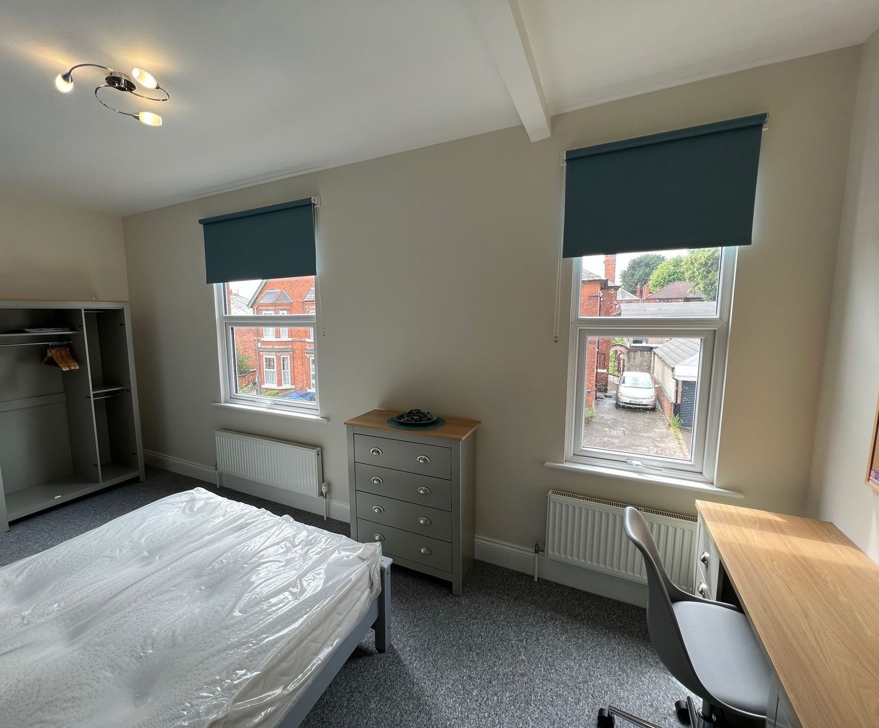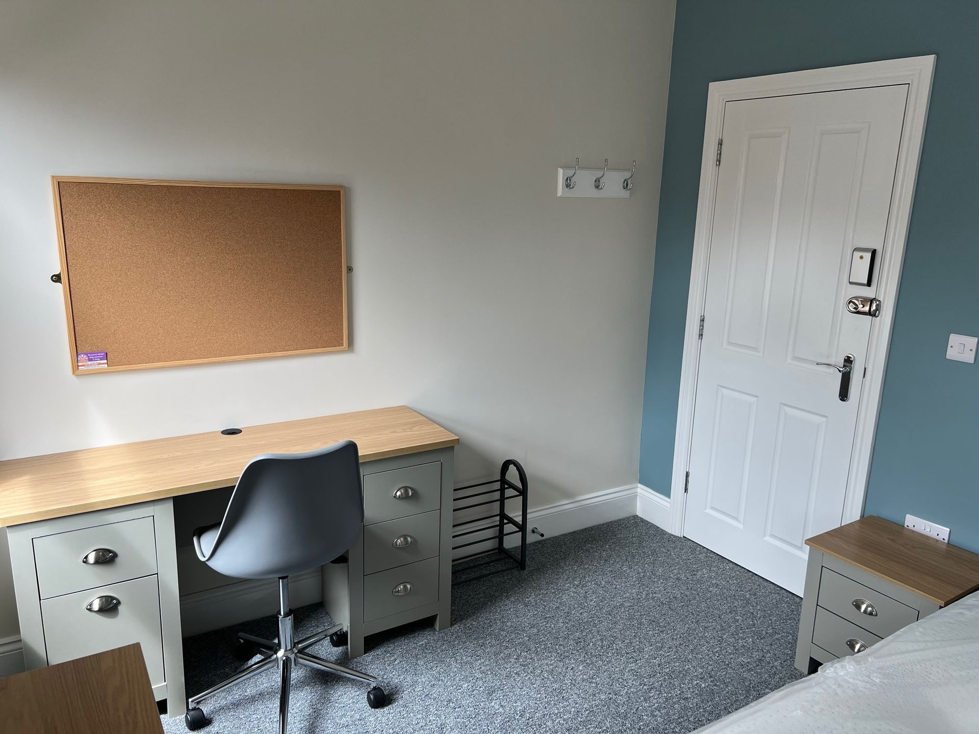 Matching stylish furniture provides ample storage and the double bed allows for additional storage. Desk with office chair, ethernet point and new uVPC double-glazed windows each with integral fire escape openers. Great for somebody who wants to enjoy the space of a large room and is happy to climb the stairs!